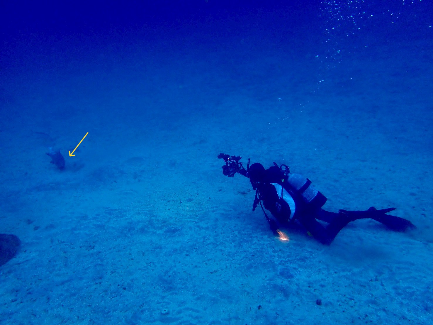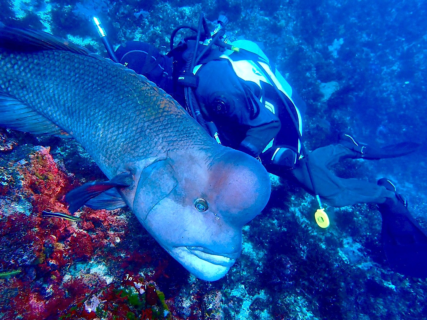 纏わり付くコブダイ(誰か餌付している。)期待しても無駄! あげない! 無視!