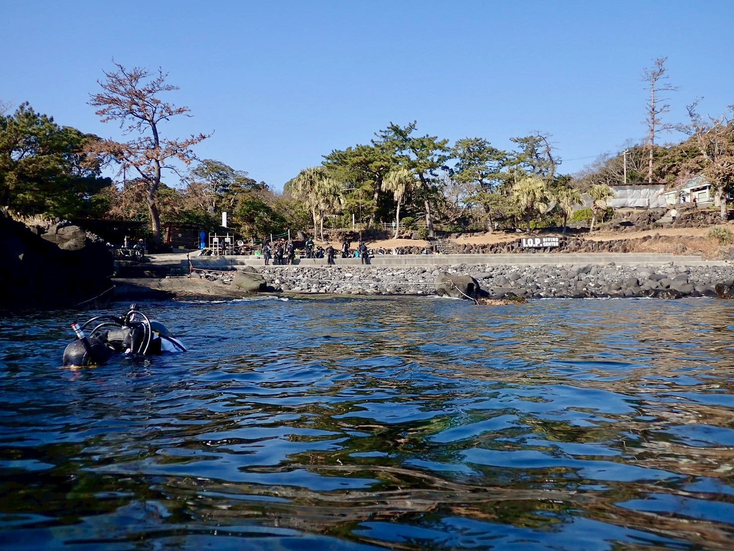 西伊豆・雲見も候補だったが強風でクローズ。 なのでIOP(伊豆海洋公園)。 園内はダイバーも少ない。